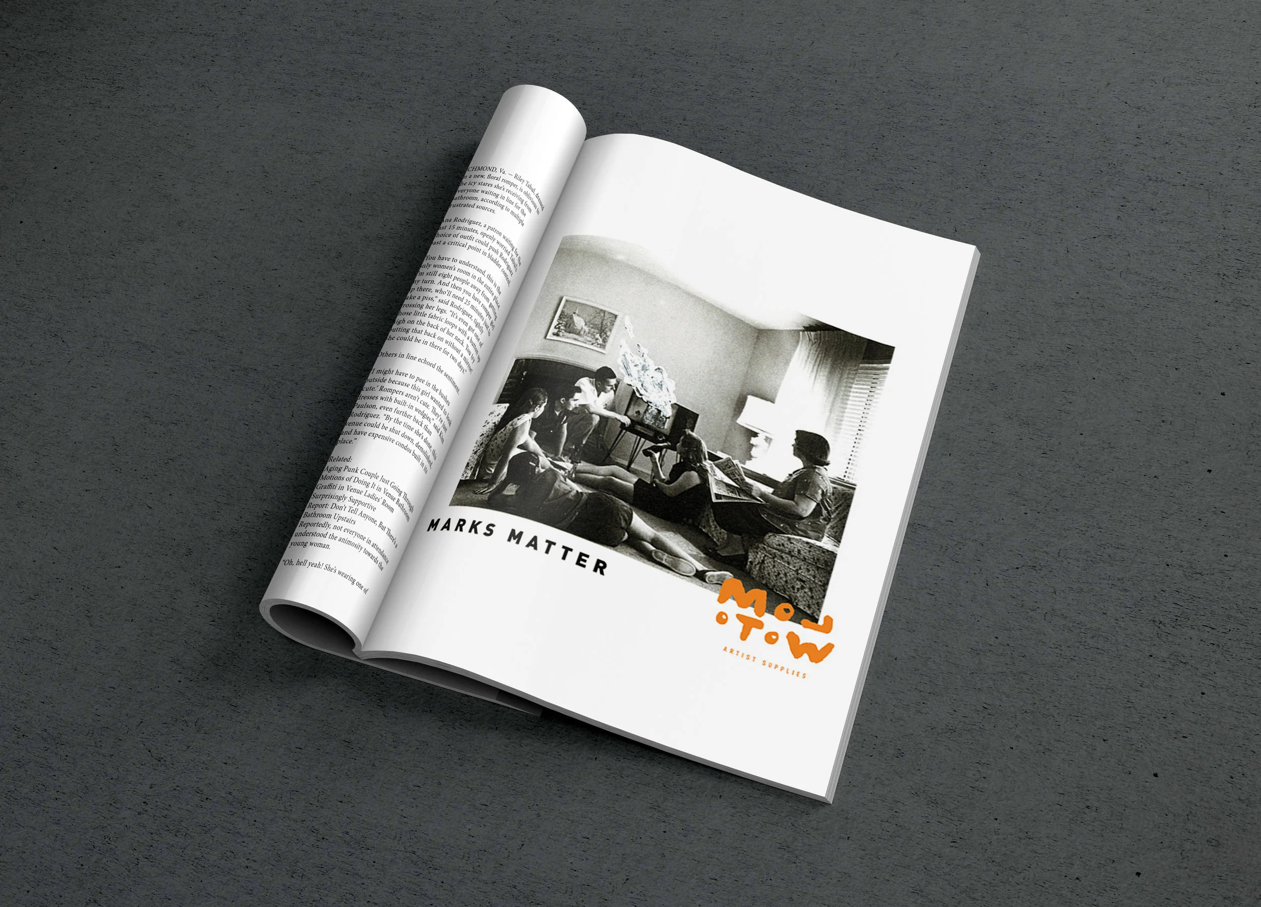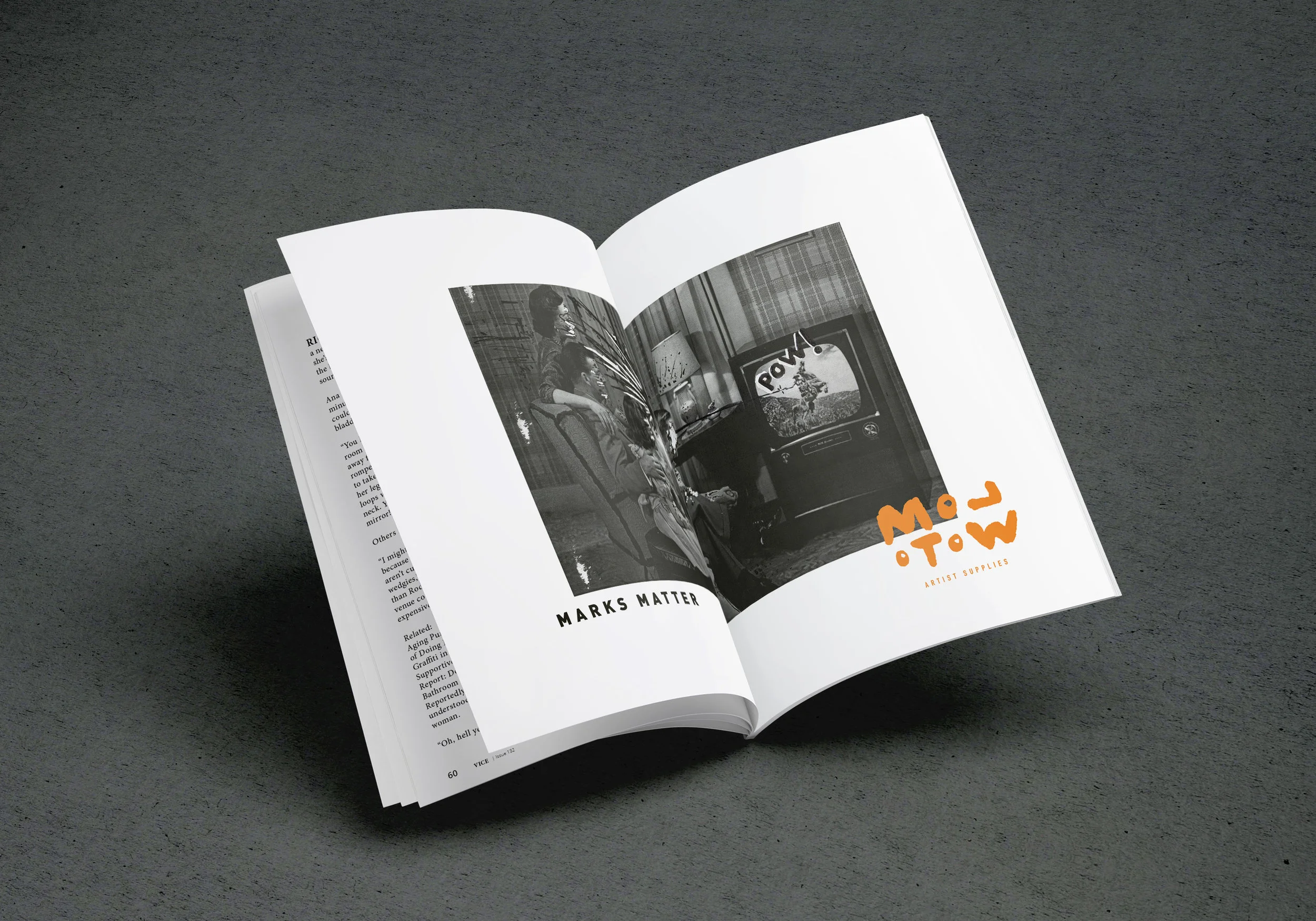 Molotow enables artists to create and share their opinions and visions to the world anywhere and everywhere. They manufacture artist paint markers. My concept for rebranding Molotow explores the empowerment of artists' voices by using an exiting orange and strong opinions. The design takes inspiration from impactful, in your face, and opinionated graffiti writers, but infuses the it with photography, and a grid that invades and redefines boundaries like a strong artist. Molotow Artist Supplies rebranding - stationary, package, and print ad campaign.