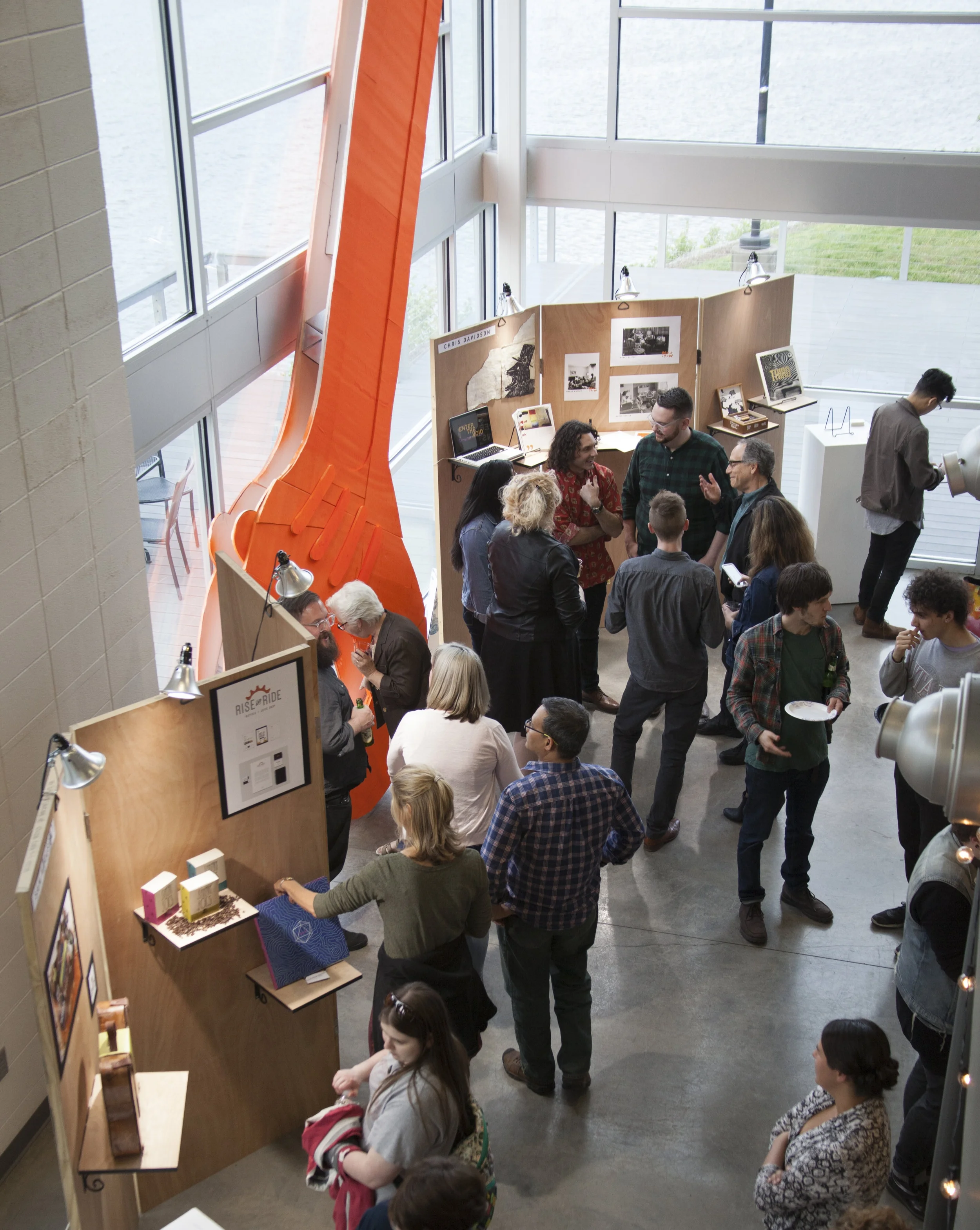 In addition to the website and poster, I created an 80ft long orange wrench to further push the theme of WORK. The colossus was assembled from foam-core, cardboard, hotglue, and orange spray paint. It was an abstraction of the theme of work melded to a familiar shape. Orange was chosen as a continuation of the "work" theme as construction equipment is often flourecent orange.